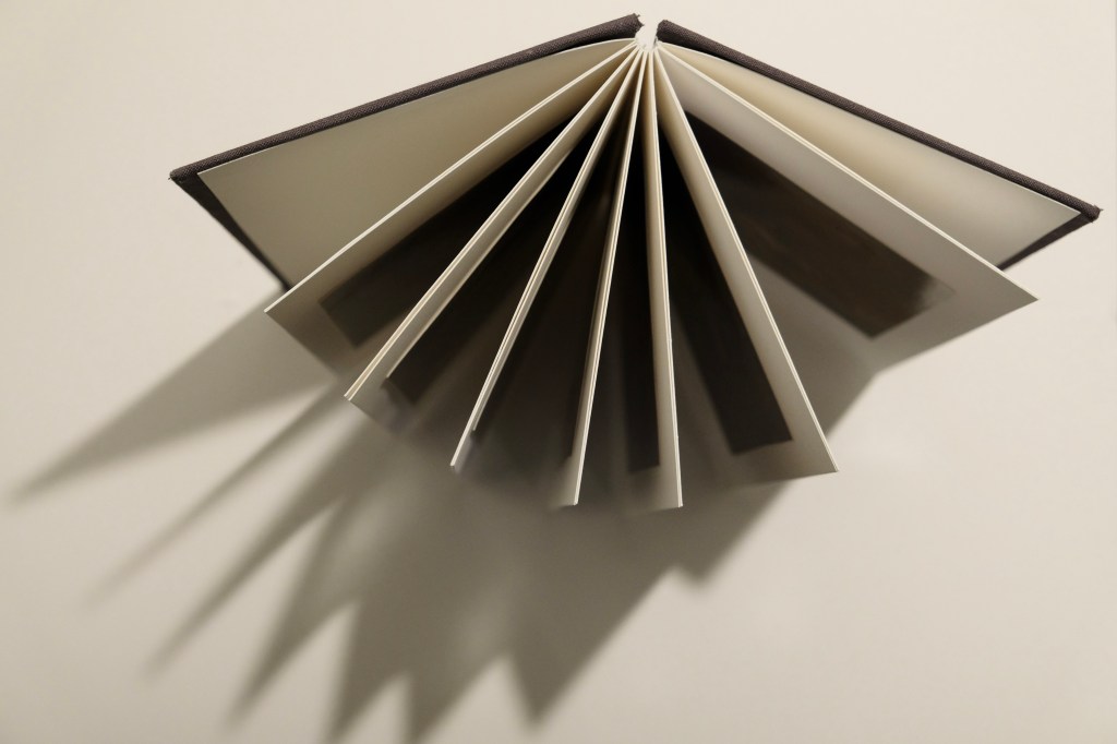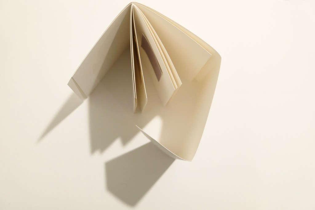Silence, 2024 — hand-crafted, hardbound, accordion style, 12 pages, 9 images printed on Hahnemuehle archival inkjet paper, edition of 3 + 1 AP, 4.5 x 4.5 inches.