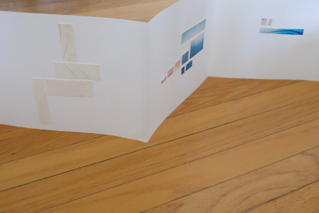 Onshore, 2024 — handmade, hardbound, leporello style, 8 pages, 16 unique gelatin silver lumen prints tipped in, card stock, unique, 5.5 x 4 inches.