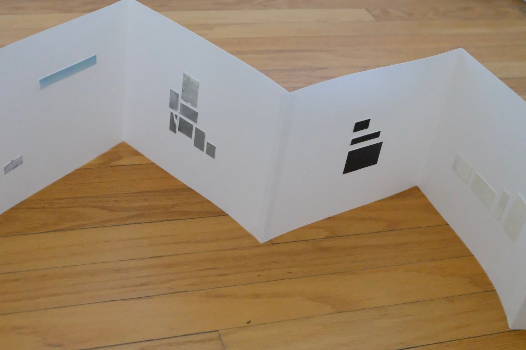 29, 2024 — handmade, hardbound, leporello style, 8 pages, 18 unique gelatin silver test prints (from 1998) tipped in, Hahnemuehle archival paper, unique, 4.5 x 4.5 inches.