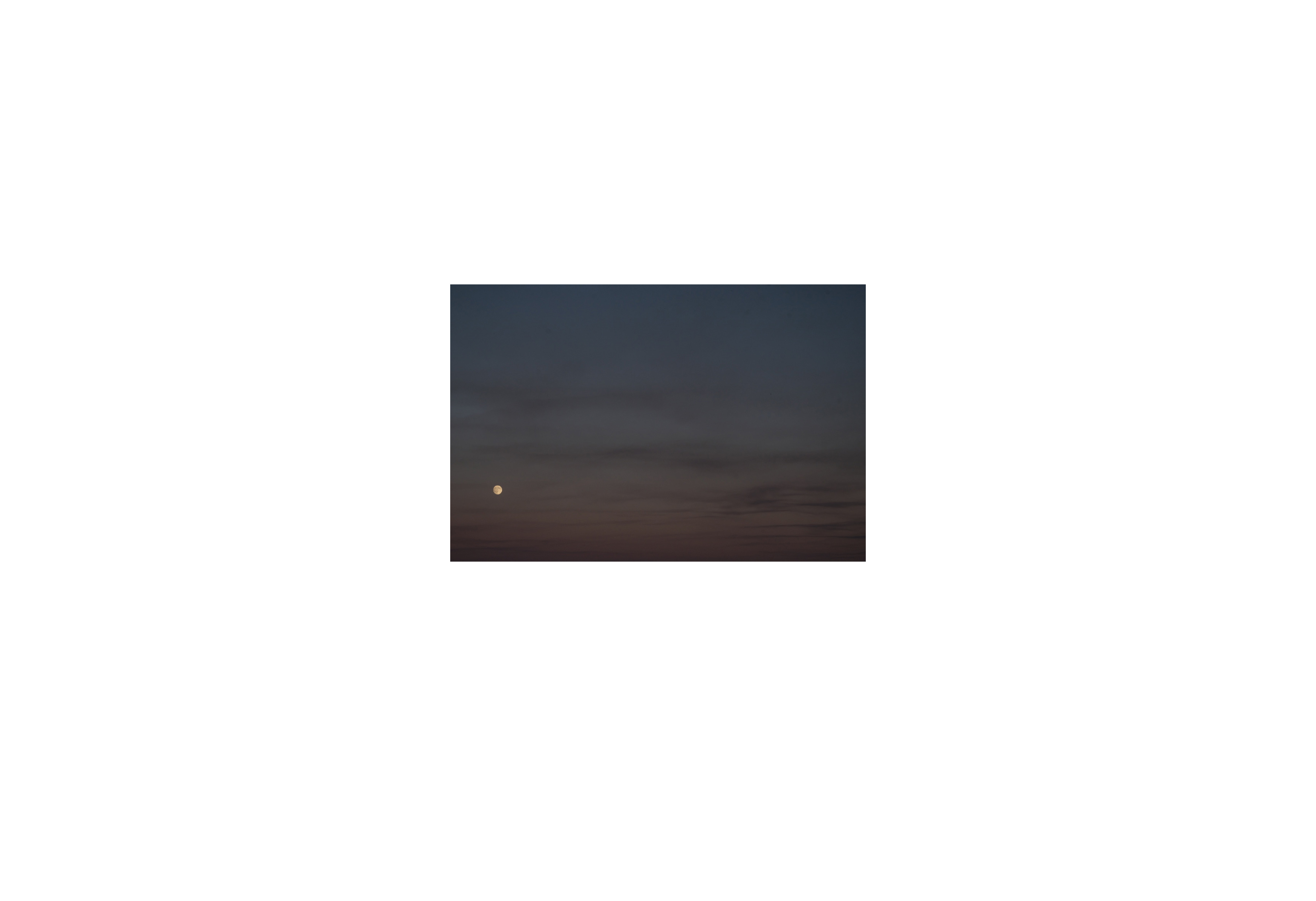 In a further exploration of digital processes and as an extension of my Missing Objects. project, I began thinking about working in collaboration with Photoshop’s removal tool. I wondered how many times the tool and I could have a back and forth before one of us crashed. I made 46 images of the full moon from my Chicago window on October 5, 2025. I repeatedly used the remove tool on the full moon image below, leaving a border edge so that Photoshop had information to work with in order to repopulate the pixels I removed (the system wouldn’t allow me to remove the image completely.) This one image, and each iteration after using the removal tool, was sifted through the system 260 times before the system stopped generating new information.