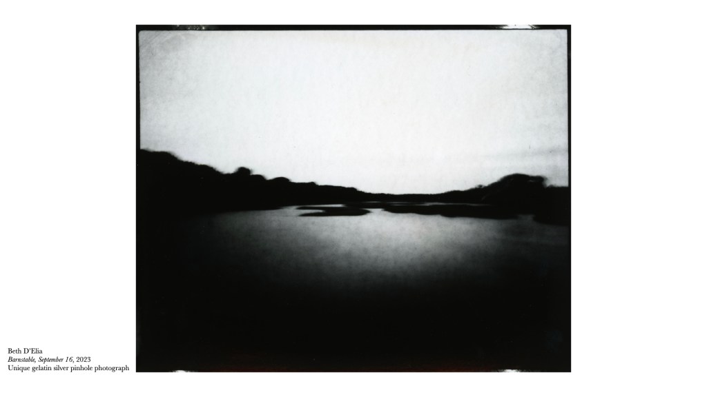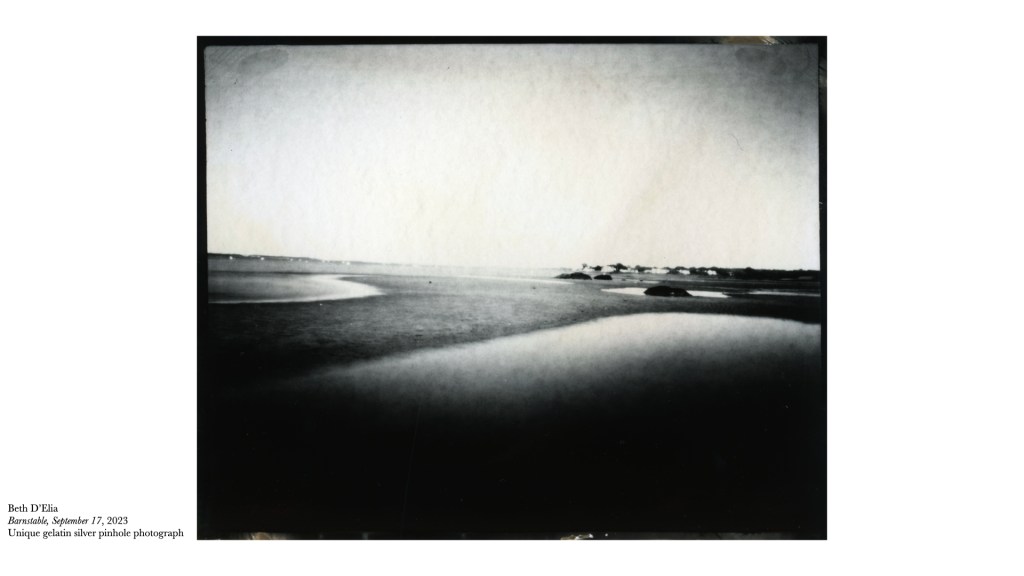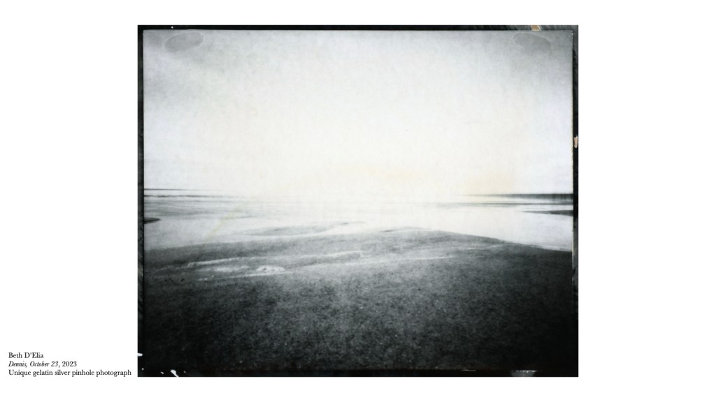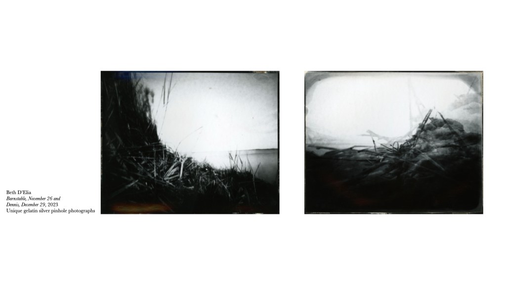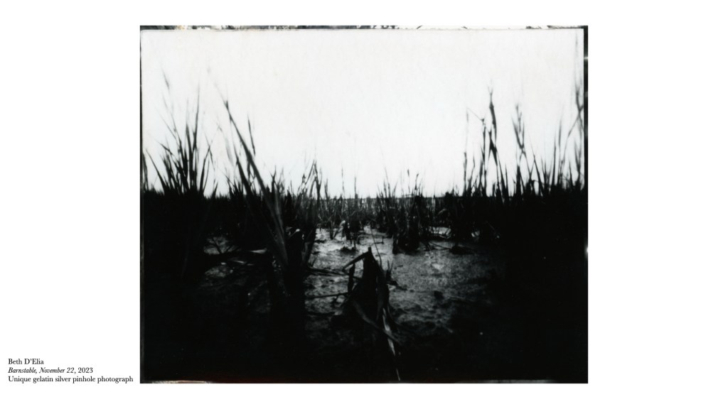 In this body of work (2023—2024), I’m using the intuitive, and receptive process of pinhole photography. I’m reconnecting with Cape Cod, and the wild lands that formed me. By placing the pinhole camera directly on the land or by foregoing the use of a tripod and using it as a handheld camera, I allow the fluctuations of the energy of the land and my breath to embody these images. I’m surprised by what I receive from the camera each time I develop the images.