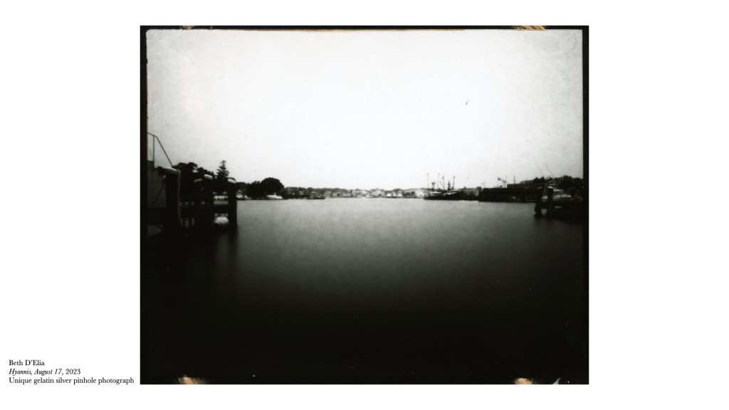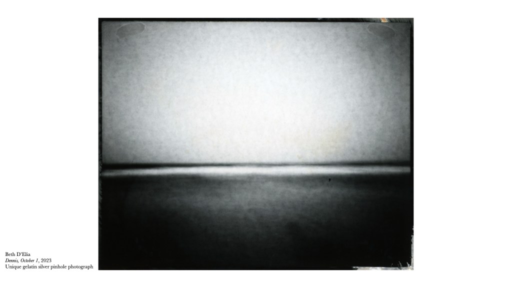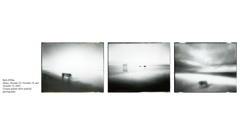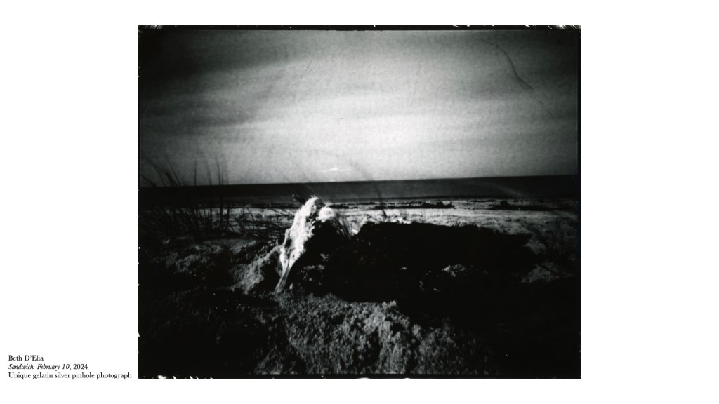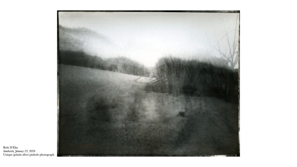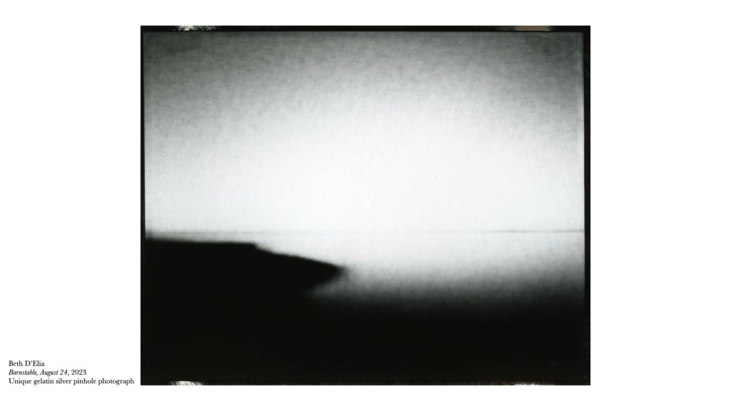 In this body of work (2023—2024), I’m using the intuitive, and receptive process of pinhole photography. I’m reconnecting with Cape Cod, and the wild lands that formed me. By placing the pinhole camera directly on the land or by foregoing the use of a tripod and using it as a handheld camera, I allow the fluctuations of the energy of the land and my breath to embody these images. I’m surprised by what I receive from the camera each time I develop the images.